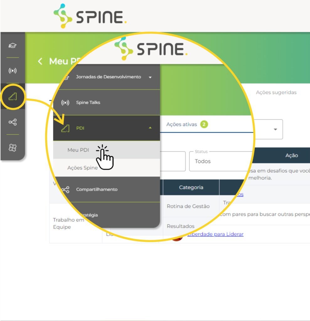 Na Plataforma de Desenvolvimento Spine você pode alavancar sua carreira com a criação do seu Plano de Desenvolvimento Individual (PDI) de uma forma simples e eficiente.